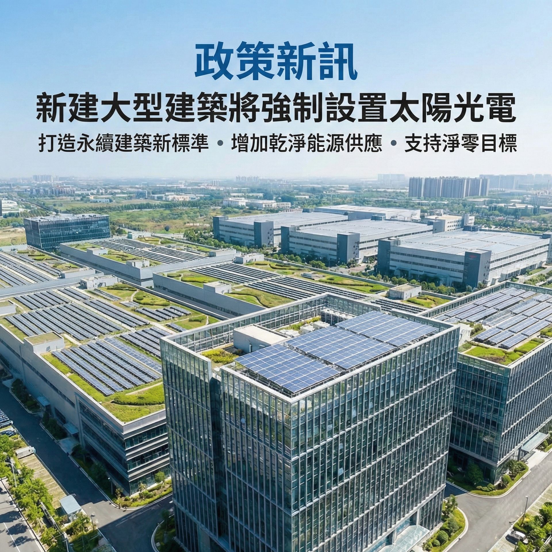 ☀️ 政策新訊|新建大型建築將強制設置太陽光電